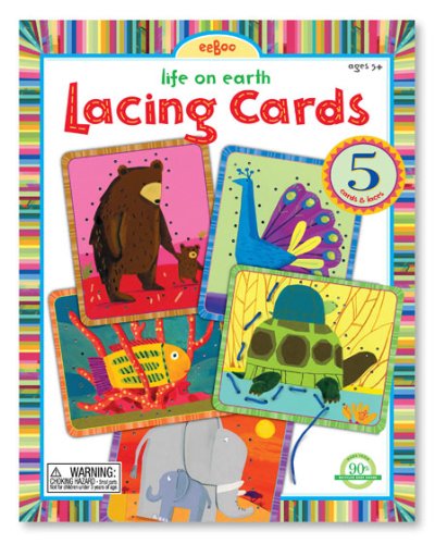 WARNING: CHOKING HAZARD – Small parts. Not for children under 3 years. Beautifully illustrated by Melissa Sweet for eeBoo, Life on Earth Lacing Cards feature vibrant colors and graphics that make these cards little masterpieces! Features five sturdy cards laminated on both sides for extra durability and five faux-silk threads that won't unravel. Lacing cards are a classic when it comes to developing fine motor skills and entertaining children. Includes a laminated gift box. Read moreRelateItems